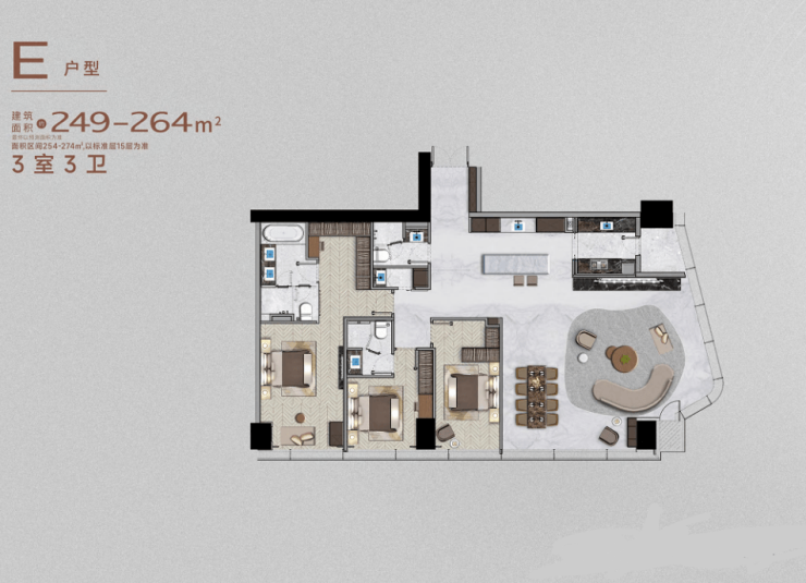 其中,约350平方米的超级大平层更堪称典范——其一体化会客厅尺度堪比百平方米普通住宅,不仅满足家庭聚会、艺术陈列、私人宴请等多元场景,更彰显主人非凡的格局与品位。在琶洲西区对外销售的住宅项目中,如此尺度与视野的产品,可谓独此一席。