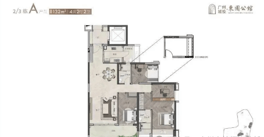 120-137㎡四房(1-3 栋均有):空间开阔,四房布局可满足三代同堂,部分户型虽临东濠涌高架,但整体采光通风良好,适配越秀本地改善家庭,追求老城区生活便利性与空间舒适性。