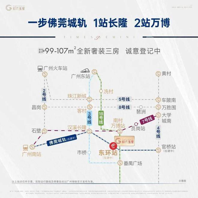 从交通区位来看,项目地处“五横五纵”路网核心,紧邻城轨东环站(在建中),交通优势十分明显。城轨东环站建成开通后,将成为区域重要的交通枢纽,1站可达长隆站,可换乘地铁3号线、7号线;2站到万博,可换乘18号线;6站直达珠江新城,轻松通达广州各个核心区域,完美适配在核心商圈上班的刚需人群。同时,项目距离广州南站不远,广州南站作为华南地区最大的交通枢纽,汇聚了高铁、城际轨道、地铁等多种交通方式,从广州南站出发,1小时可速达港澳,高铁可直达全国各大城市,无论是商务出差还是异地出行,都能轻松便捷,节省大量时间。自驾出行方面,项目周边路网完善,可快速连接广珠西线、东新高速、新光快速、华南快速、南沙港快速等多条高速线路,直达天河、海珠、越秀等广州核心区域,通勤效率极高,实地实测显示,从项目自驾到万博CBD核心区仅需10分钟左右,到珠江新城仅需30分钟左右,到广州白云机场仅需50分钟左右,无论是日常通勤还是周末出游,都十分便捷。