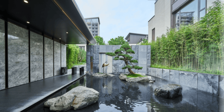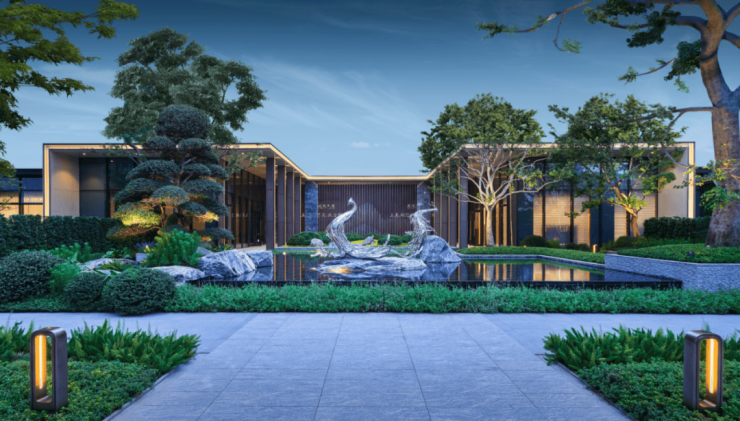 项目的园林景观设计独具匠心,从抽象画艺术大师蒙德里安的作品中找到灵感,以几何图形的切割唤醒园林的想象力,以多维线条勾画场地布局,形成精湛而丰富的景观空间,赋予整个园林景观满满的仪式感。