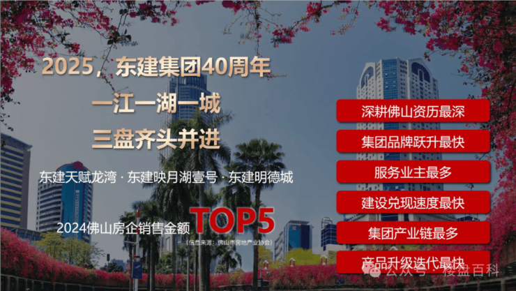 东建集团,致力成为佛山最具价值的城市综合服务商,40年来累计开发了700多万㎡住宅和70多万㎡商业物业,筑就超7万户家庭安居乐业,总资产规模超200亿;涉猎业务板块多且成就非凡,为佛山城市建设发展、舒居生活构筑起美好蓝图。
