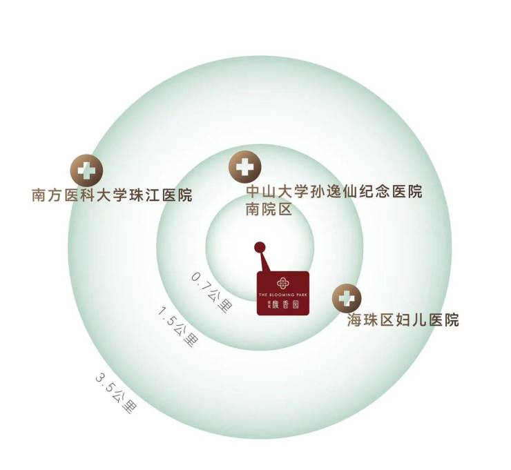 医疗资源完善,就医便捷,约750米可达中山大学孙逸仙纪念医院(三甲),约1.5公里可达海珠区妇儿医院,3.5公里范围内覆盖南方医科大学珠江医院、广州医科大学附属第二医院等优质三甲医疗资源,全方位为业主健康保驾护航。