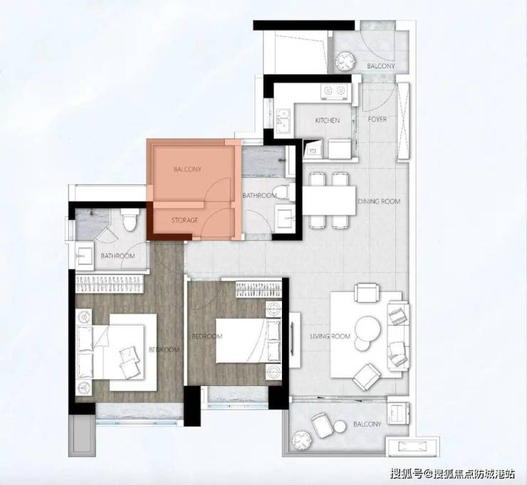 103㎡四房:超大玄关柜+大进深阳台,合理动线;