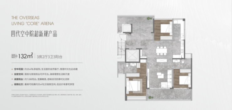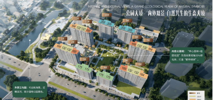 建面132~205㎡,全盘四代空中庭院,户户带私家庭院,部分户型阳台挑高6米,使用率约130%。