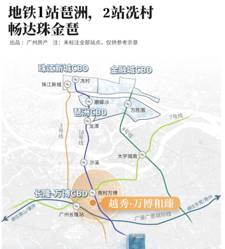 越秀·万博和臻距离18号线南村万博站约800米,同时靠近3号线、7号线交汇,1站直达琶洲,2站到冼村,快速衔接珠江新城及广州南站,实现大湾区核心城市通勤高效。自驾方面,社区无缝连接华快、新光快速及番禺大道,15分钟内可达CBD及万博核心商圈,30分钟抵达珠江新城与金融核心区域。立体交通网络结合地铁、快速路及干道布局,不仅满足日常通勤需求,也支持家庭成员在全城范围内高效出行,使居住便利性与城市核心价值充分兼得。