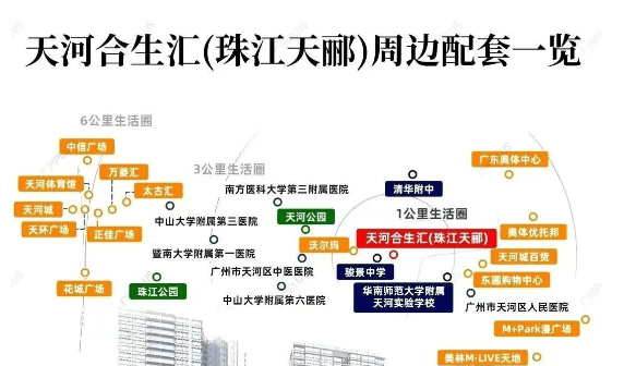 珠江天郦不仅地理位置优越,还配有丰富的社区设施和周边商业配套。项目内部设有巴比伦空中花园、花园会客厅、儿童游乐中心等休闲设施,满足了不同年龄段居民的需求。外部则有约40万方的合生汇商业综合体,集高端商业、酒店、会所于一体,加上周边卜峰莲花、沃尔玛等大型商超,日常生活所需一应俱全。此外,暨南大学附属第一医院东圃院区和其他多家三甲医院也在附近,为居民健康保驾护航。