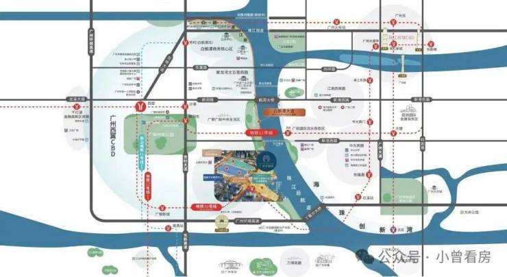 城市高阶资产,永远占位时代发展核心,广州幸福湾择址白鹅潭世界级商圈核心腹地,坐拥广州西部发展核心红利、珠江后航道不可复制的江岸资源与千年珠江文脉底蕴,地段天赋卓绝,未来成长价值持续攀升。作为广州十四五重点规划的五大世界级地标商圈之首,白鹅潭片区三年落地超百个重点项目,三千亿城市资本持续注入,产业升级、商业落地、文化配套、交通路网全面迭代,区域界面迎来跨越式焕新。片区高能级配套密集落地,广东美术馆、广东文学馆、非遗展示中心组成的三馆合一文化地标落成,广州首座万象城、聚龙湾太古里旗舰商业、星河COCO Park高端商圈集群加速成型,多元高阶商业与文化地标共生,重塑广州西岸封面。