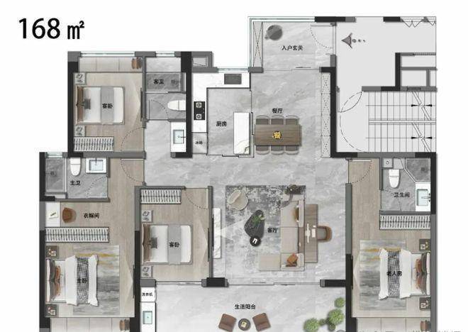 建面约 168㎡全四房户型