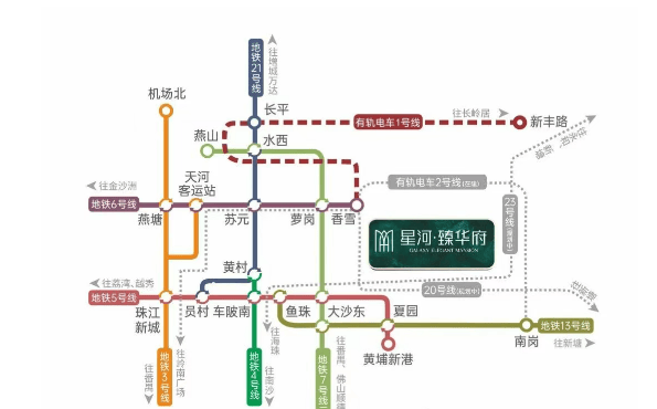 尽管【星河臻华府】距离最近的地铁站有一定距离(约2公里),但项目周边交通网络依然十分发达。项目毗邻6号线香雪站,快线4站即可直达天河CBD;此外,7号线和21号线均已通车,进一步提升了区域的通勤便利性。规划中的地铁20号线和23号线将进一步完善轨道交通体系。对于自驾一族来说,项目紧邻开创大道和开源大道,方便快捷地连接至广州各主要城区。同时,项目周边还设有多个公交站点,并且有轨电车1号线和2号线始发于香雪站,为居民提供了多样化的出行选择。这种多层次的交通体系,使得【星河臻华府】的居民可以轻松实现高效通勤。