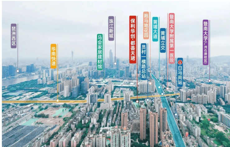 交通配套: 项目位于华南快速和黄埔大道交汇处,交通路网四通八达。自驾出行方面,开车10分钟即可抵达珠江新城核心区、金融城及琶洲西区,通勤效率极高。地铁方面,项目紧邻在建的【13号线二期白马岗站】,预计2025年底通车,届时步行5分钟即可到达。同时,项目周边还有【5号线】、【13号线】(一期)和【21号线】等多条地铁线路,形成了高效的轨道交通网络,无论是去往广州东站还是珠江新城,都极为便捷。