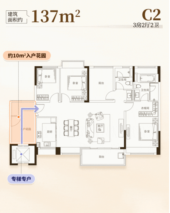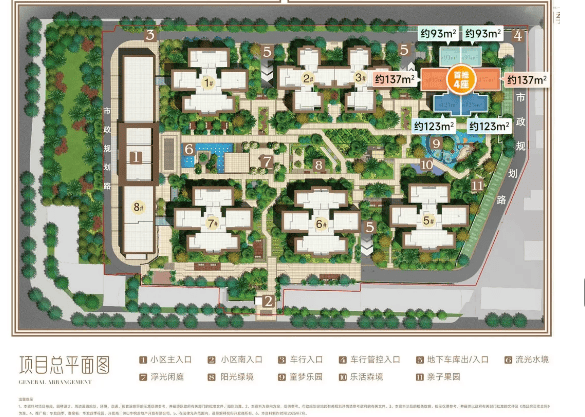 户型设计:93-137㎡专梯专户,改善户型占比 70%