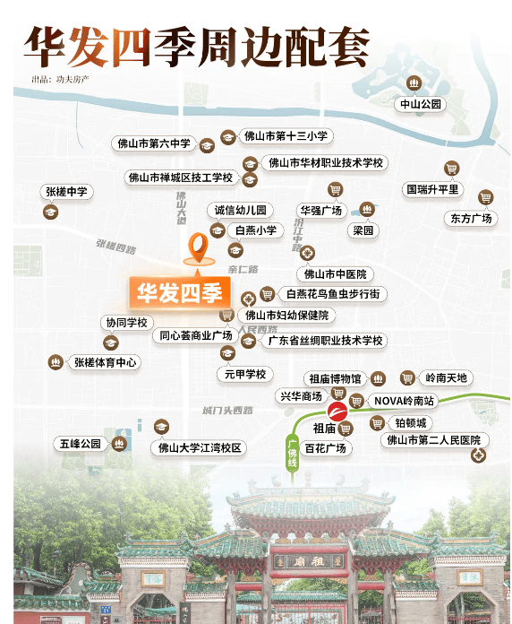 华发四季地处祖庙城芯正脉,区位优势堪称 “一步拥享全城资源”。交通方面,项目距广佛地铁祖庙站约 1.5 公里,3 站换乘佛山地铁 3 号线,30 分钟直达千灯湖、季华商圈,1 小时融入广佛主城生活圈;周边佛山大道、汾江中路等主干道环绕,自驾出行便捷,2.5 公里直达季华商圈,日常通勤高效无忧。