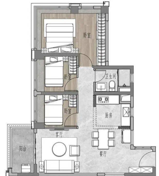 (一)户型设计:南北对流,三房格局,零浪费空间