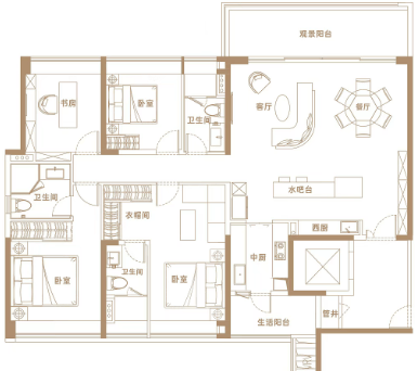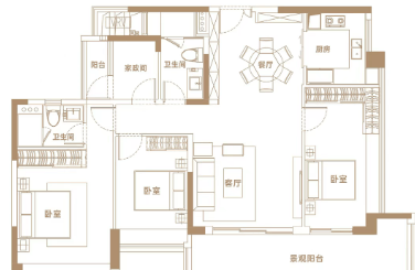 建面约 138㎡南向瞰景四房堪称 “爆款户型”,一梯一户的独立入户设计尽显尊崇,四开间朝南搭配约 8.4 米 270°IMAX 环幕阳台,将阳光与江景悉数揽入室内,客餐厅无梁一体化设计,进一步拓展了空间通透感,日常家庭聚会或朋友小聚都绰绰有余。