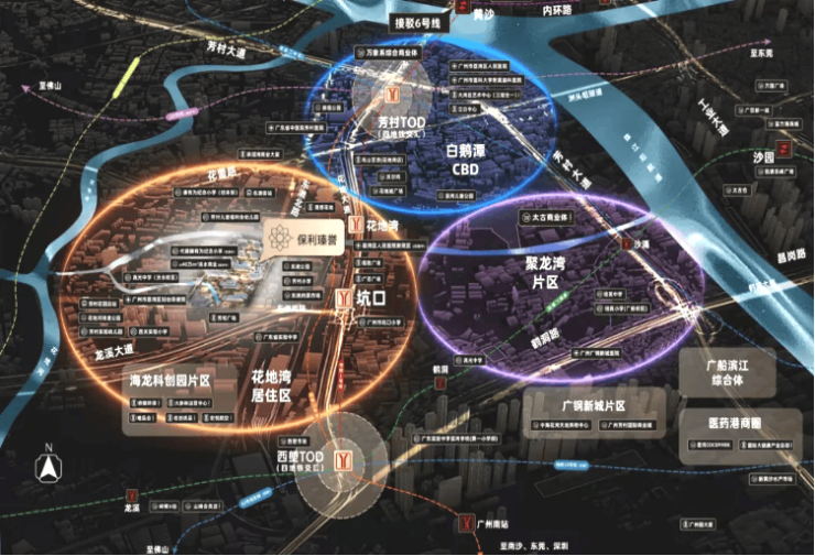 保利瑧誉的位置,就在花地湾的“核心成熟区”:离地铁1号线坑口站约800米(步行可达),离广百广场约500米,离康有为纪念小学(省一级)约300米——既不偏,也不吵,刚好是“出则繁华,入则宁静”的距离。