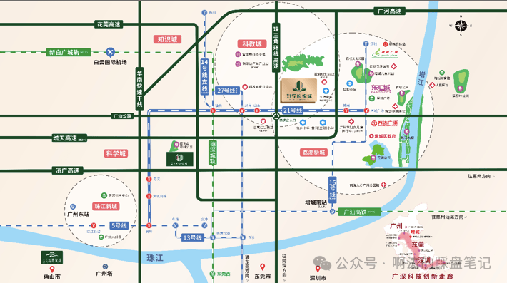 16号线虽然目前还在规划阶段,但一旦建成,将进一步提升区域交通便利性。城轨方面,新白广城际铁路正在建设中,预计2021年底试运营。开通后可直达白云机场,接驳穗莞深城际可通达东莞西站、深圳北站等重要交通枢纽。