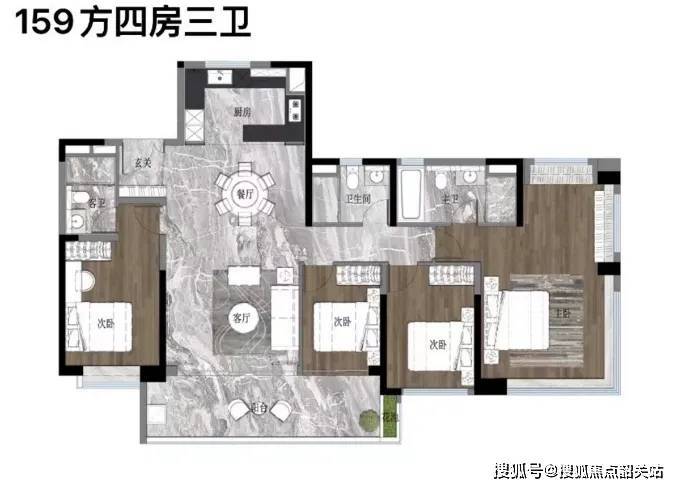 159㎡四房三卫:总价750万+,五开间朝南,独立家政间+270°观景飘窗,高净值人群终极改善之选。