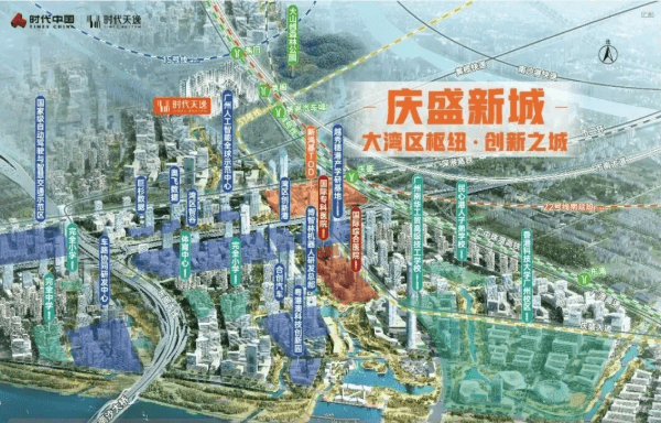 时代天逸傲立广州南沙庆盛枢纽与区府双核交汇板块,地理位置得天独厚。项目紧邻地铁4号线黄阁站A出口,步行仅约200米即可直达站厅,真正实现“地铁上盖”生活。依托4号线,1站即达南沙区政府所在地,2站直抵广深港高铁庆盛站,由此出发,30分钟内可抵达香港西九龙站,轻松串联深圳北、广州南等核心枢纽,构建起覆盖广深港的“半小时湾区生活圈”。