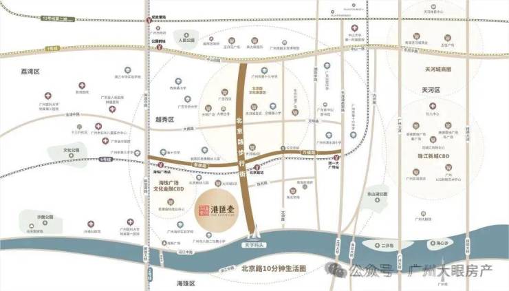 项目楼下100米就是6号线北京路站,另外步行600米就是2号线以及6号线交汇站海珠广场站,珠江新城、琶洲、白鹅潭皆在项目8公里范围内。