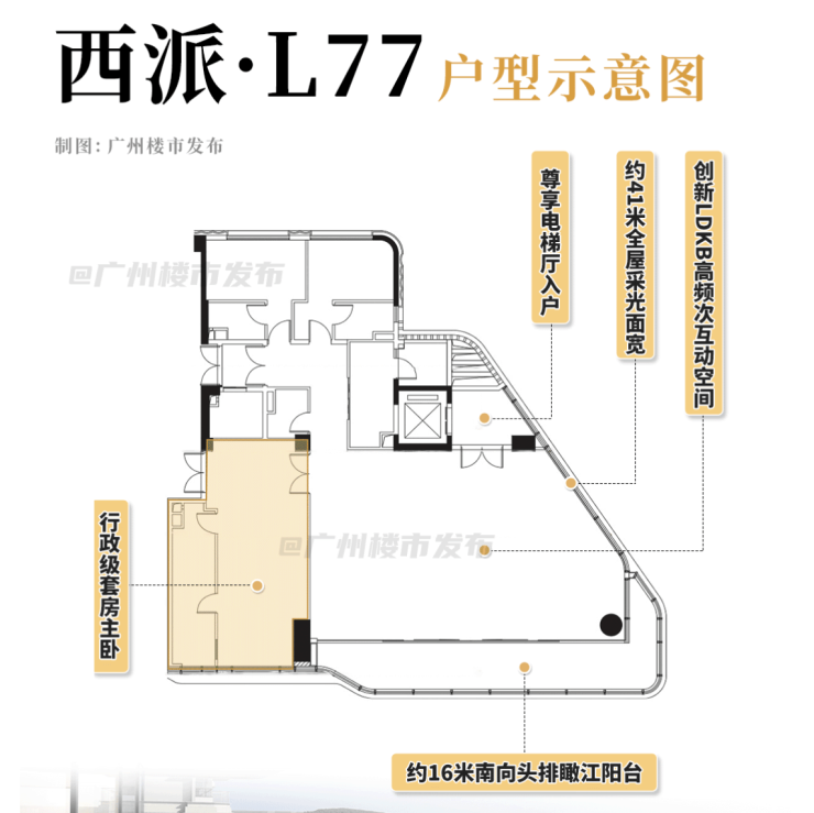 西派L77瞄准高净值年轻富豪及湾区精英群体,推出180至370平方米的超大南向江景大平层,户型稀缺且仅有77席,首批42套,彰显项目独特价值与尊贵感。项目的推出不仅满足高端住宅需求,更通过国际化生活方式设计,为塔尖人群打造专属江景豪宅,实现居住体验的高度品质化、定制化与私密化。