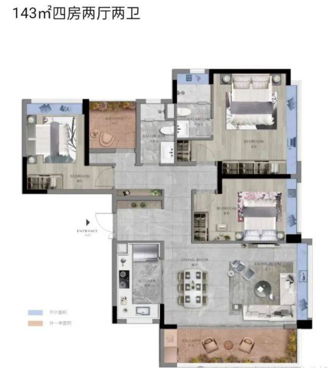 在约10.14万平方米的土地上,项目打造了总建筑面积约45万平方米,涵盖19栋住宅、滨江公园、滨水商业、下沉会所的大型生活共同体。3.01的容积率和约37%的绿化率,经过“三廊三纵”的园林规划,转化为千米健身环跑道、全龄活动区、阳光草坪等丰富的休闲空间。社区配备恒温泳池、健身房、下沉式会所等高端设施,并由国家一级资质的奥园智慧生活提供物业服务。1:1.6的高车位比则充分满足了现代多车家庭的停车需求。这是一个功能完善、配套齐全、能够满足不同年龄段家庭成员需求的“全景式”品质社区。