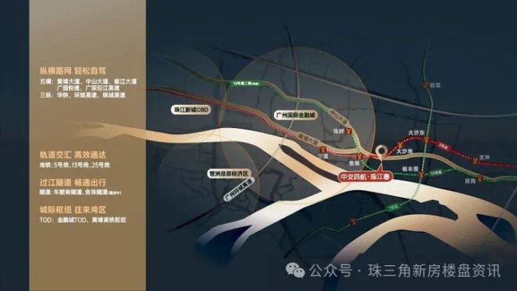 顶级地段的价值,需要通过极致高效的交通路网来实现。中交四航·珠江春 所在区域,已构建起一个“轨道+路网”双重叠加的立体交通体系,实现了对全城乃至大湾区核心城市的快速触达。