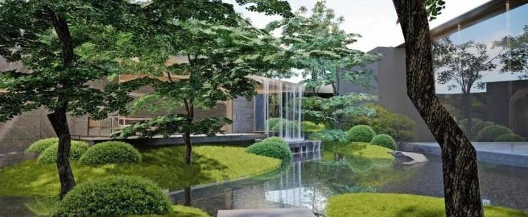 攫取岭南园林之基调,追溯人文生活本源,以现代造园功法,解构山水图景,打造“林起、穿林、林间、远林”四大主题景观,献呈可赏,可游,可居的桃源谧境。