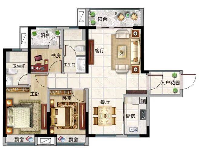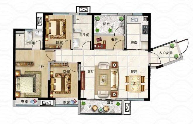 功能拓展:四房的布局,可满足多人口家庭的居住需求,同时提供更多功能空间选择。除了卧室,多出的房间可打造为书房、儿童游乐区、健身房等,满足家庭成员不同需求。