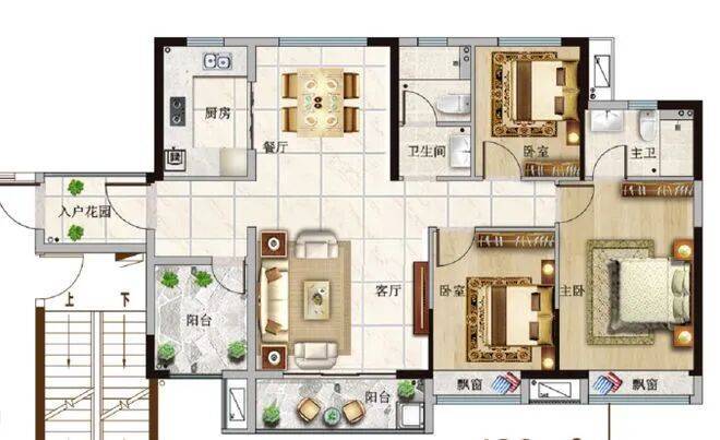 舒适升级:相比94㎡户型,空间更为宽敞,居住舒适度有所提升。客厅、卧室的尺度进一步加大,可容纳更多家具和活动空间。观景阳台可能更宽敞,提供更好的视野和休闲空间。