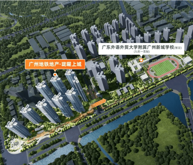 项目配建了一所幼儿园和一所广外附九年一贯制公立学校,业主子女可享受目送式上学体验。学校名为广东外语外贸大学附属广州新城学校(暂定名),已于2025年3月21日签约成立。