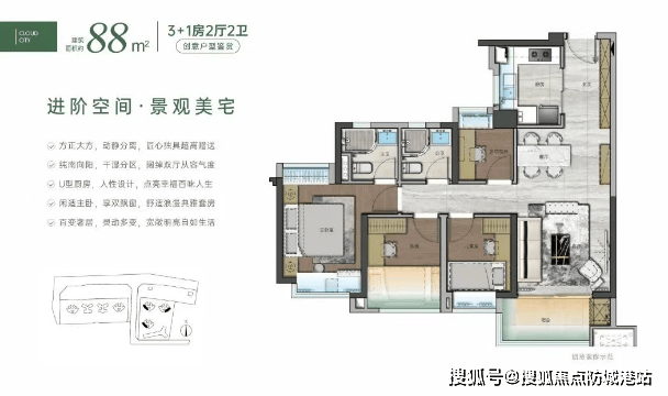 📐户型亮点(以建面约105㎡四房为例):