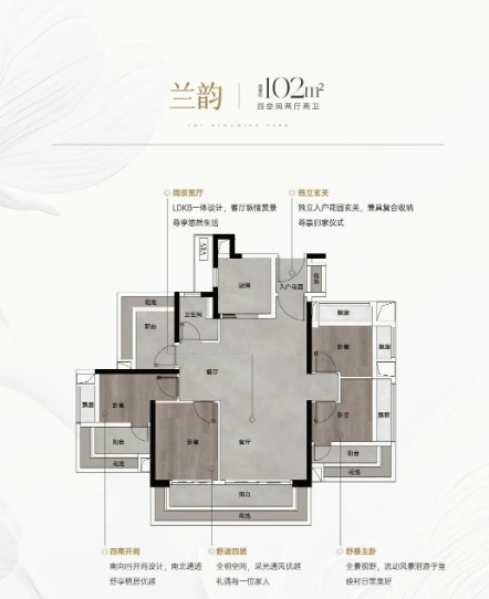 绿城馥香园为超新规项目,使用率超 125%,给予业主更多实用空间。全盘规划建面约 102 - 128 平南向三至四房,未来还将推出约 85 平小户型(货量较少)。所有户型均为单边位,私密性极佳,为业主打造专属舒适空间,提升居住体验。