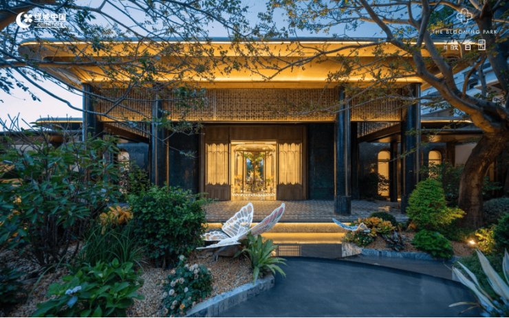 园林景观是绿城的核心优势所在,绿城馥香园以岭南人文为根基,融合现代美学与自然意境,打造全维沉浸式游园社区。社区入口打造馥香门庭,以花瓣圆柱、范思哲黑石立柱、铂金钻奢石底座构筑尊贵归家仪式感,彰显大宅府邸的气度与风范。楼栋之间以风雨连廊无缝衔接,形成廊下游园的独特归家体验,雨天行走不湿鞋,夏日出行不暴晒,兼顾实用性与美观性。流花水院借鉴高端酒店园林设计理念,打造叠水式瀑布景观,搭配造型朴树、紫花风铃木、鸡蛋花、月季等全品类绿植,构建从叶香、花香到果香的多层次嗅觉体验,漫步其中,馥郁芬芳萦绕周身。以莫奈睡莲画作为灵感,打造约 3.7 米巨型玻璃挂片,复刻艺术光影之美;下沉式观瀑亭、露天社交会客厅错落分布,水院、园林、花卉交织相融,营造宛若伊甸园的谧境空间,让每一次归家都成为一场穿越花园的旅行。