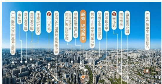- 医疗配套上,越秀珑悦西关周边医疗资源便捷。广州医科大大坦沙院区、荔湾中心医院距离项目不远,方便居民日常就医和健康检查。完善的医疗配套为居民和家人的健康提供了有力保障,让居民在面对疾病时能够及时获得专业的医疗服务,居住更加安心。