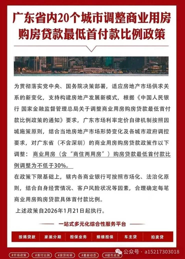 2026年4月,广州市住房和城乡建设局正式发布了一项关于商业公寓产品的重磅新政。该政策明确规定,自即日起,商业公寓的首付比例由原来的50%下调至30%,同时保持10年贷款年限不变。这一举措被视为广州楼市调控政策的一次重大调整,旨在降低年轻群体和投资者的置业门槛,激发商业公寓市场的活力。