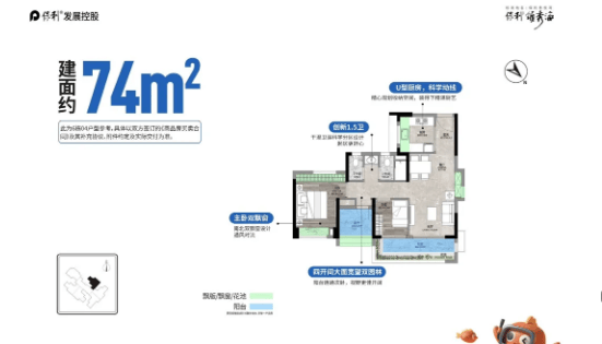 77㎡三房两厅两卫:全新升级三房户型,四开间朝南,超11米南向采光面,全屋采光充足,通透舒适;直面广阔园景,推窗即可欣赏社区园林美景,居住舒适度高;豪华大主卧设计,小户型亦可享受大空间,轻松放下1.8米大床,配备U型三面丰富采光,270度超大角度采光,视野极佳,适合有改善需求的刚需家庭。