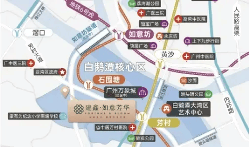 买房选地段,核心就是选生活。建鑫如意芳华的地理位置,可以说是 “老天爷赏饭吃”—— 正好位于荔湾区白鹅潭和西关的交界处,既能享受老西关沉淀百年的烟火气,又能拥抱白鹅潭 CBD 的现代化繁华,这种 “双芯” 优势,在广州主城很难找到第二个。