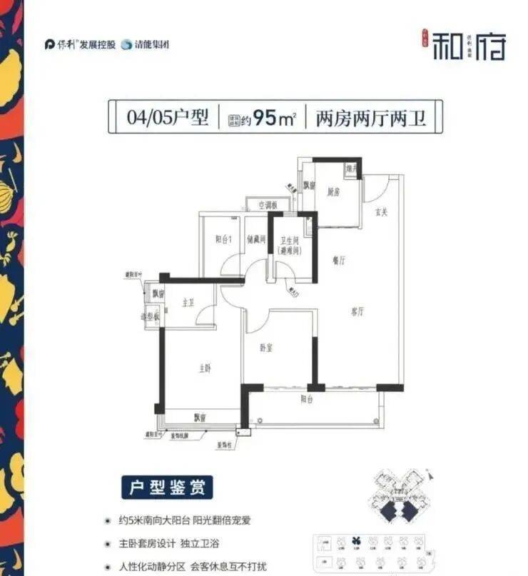 约95㎡2+1房2卫:配5.3米超宽阳台,采光面大,性价比突出;