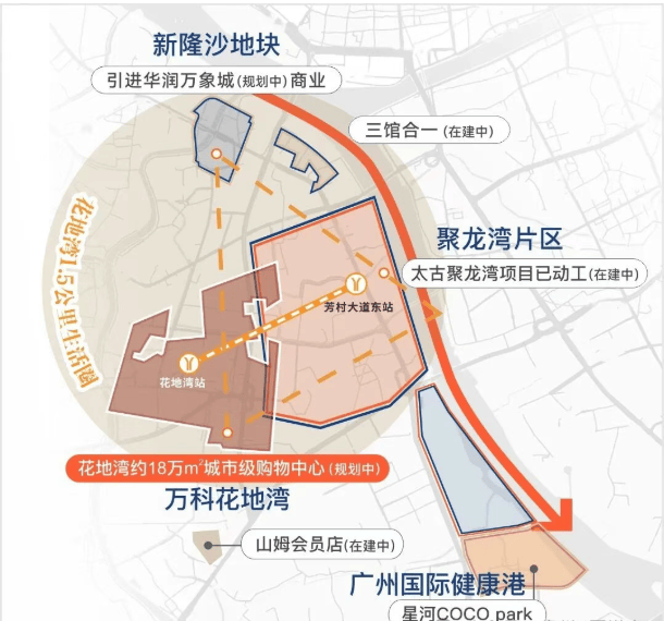 瑧园坐落于花地湾商务组团,处于白鹅潭核心区、聚龙湾组团与花地湾组团构成的“珠江西岸CAZ黄金三极”中心地带,半径约2公里内汇聚三大城市增长极。这里不仅是广州西部最具发展潜力的价值高地,更是对标纽约哈德逊广场、伦敦国王十字、纽约高线公园等国际地标的城市更新典范区域。