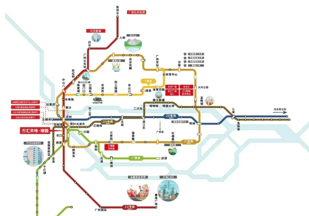 交通方面,项目距离地铁1号线、25号线(规划)交汇的花地湾站约800米,步行约12分钟即可抵达。1站直达芳村TOD枢纽,可换乘11号线(“换乘之王”,26个换乘站)及22号线,快速通达珠江新城、琶洲、金融城等核心板块。自驾出行亦便捷,周边花地大道、龙溪大道等主干道贯通全城。