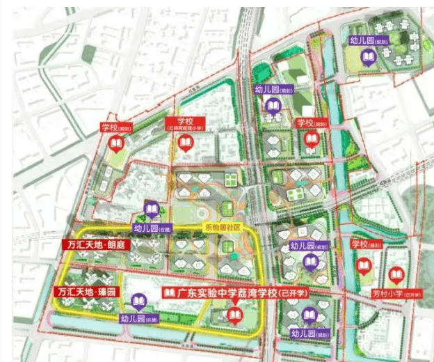 项目所在片区由万科统一规划开发,整体打造约1平方公里的活力大城——万汇天地。区域内规划约30万㎡总部办公、约50万㎡科创产业集群、约18万㎡城市级购物中心(理想花地)、约26.9万㎡华润万象城(在建)、全国首座“双太古里”(在建)等重磅商业体,未来将形成世界级商圈矩阵。瑧园业主下楼即享国际潮流生活,真正实现“产、商、住”一体化的新城市中心生活方式。