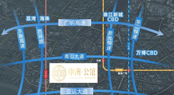 中洲公馆所处的番禺区府中心板块,是全区人口最密集、资源最集中的区域之一。5公里范围内常住人口高达80万,不仅是本地居民的生活主场,更是外来人口持续流入的重要承载地。项目所在区域被明确纳入广州新经济中轴线南段延伸带,北接珠江新城CBD,南连长隆万博中心,东望琶洲数字经济试验区,西通广州南站枢纽,真正实现“一轴串多核”的战略定位。