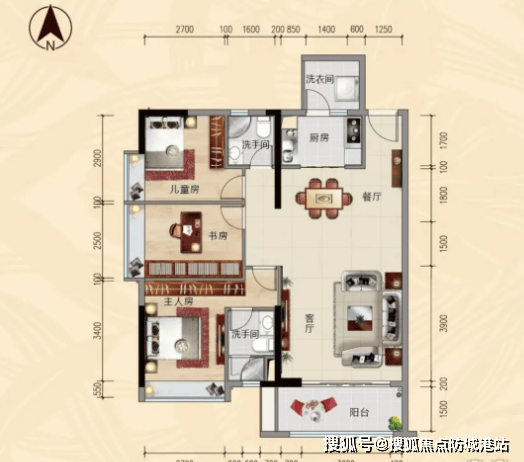 4. 114㎡三房两厅两卫:阔绰三房设计,配备主套间,保障了主人的居住私密性。双阳台设计,厅出阳台有效延伸了客厅空间,足不出户即可欣赏珠江270°一线江景,景观视野极佳。儿童房、书房、主人房一字排开,动静分区明确,家庭成员之间互不干扰,适合改善型人群选择。