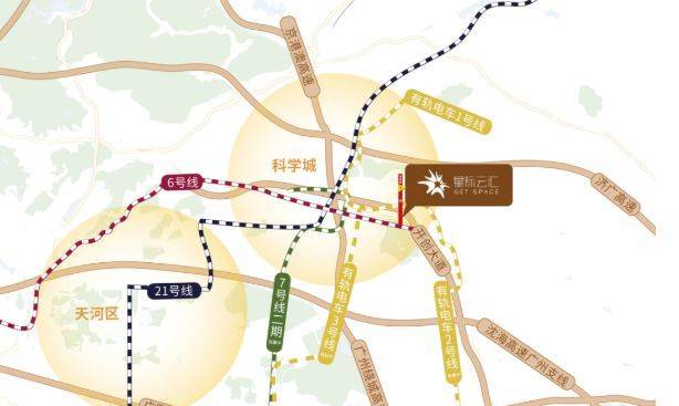 卓越的地理位置:星际云汇位于广州市黄埔区开创大道与荔红二路交叉处,为广州地铁 6 号线香雪站上盖物业。项目雄踞黄埔科学城芯,作为广深科技创新走廊动脉节点,科学城未来规划建设为工业总产值 “万亿” 强区,致力于打造极具国际影响力的中国智造中心,区域发展潜力巨大。