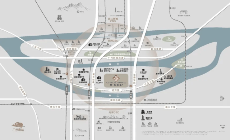 洛溪岛,地处广州城市发展中轴线南延的核心节点,北接海珠、西望荔湾、东连万博CBD,天然承接珠江新城、琶洲、万博三大CBD的外溢红利。过去因开发受限,岛内长期缺乏高品质新盘。但这一局面正被彻底改写。