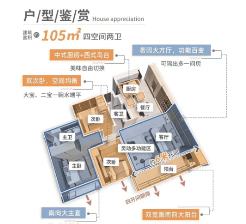 户型朝向多样,75㎡有东北、东南向,82㎡为西南、东南向,105㎡为西南向,购房者可根据采光偏好与预算选择,部分户型还能享受社区园林景观,提升居住体验。
