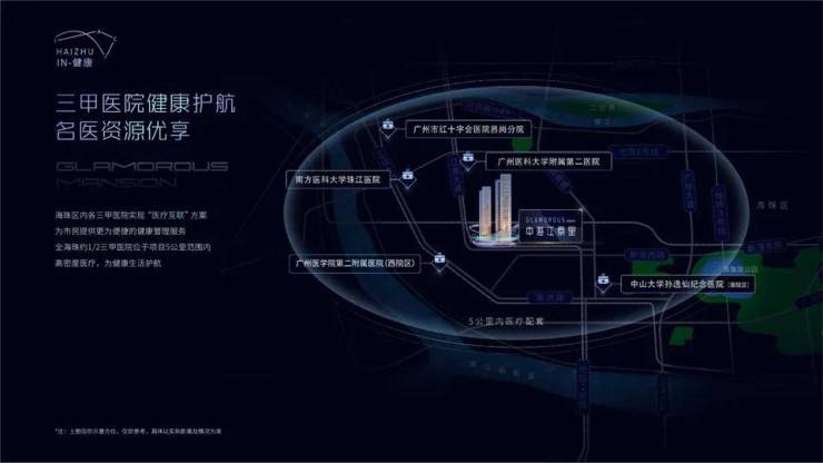 医疗配套方面,项目周边汇聚海珠 1/2 三甲医院,3 公里内有中山大学孙逸仙纪念医院、广州医科大学附属第二医院、南方医科大学珠江医院等省级名医资源,医疗水平高、资源优质,能为业主健康提供全方位保障,尤其适合有老人或小孩的家庭。