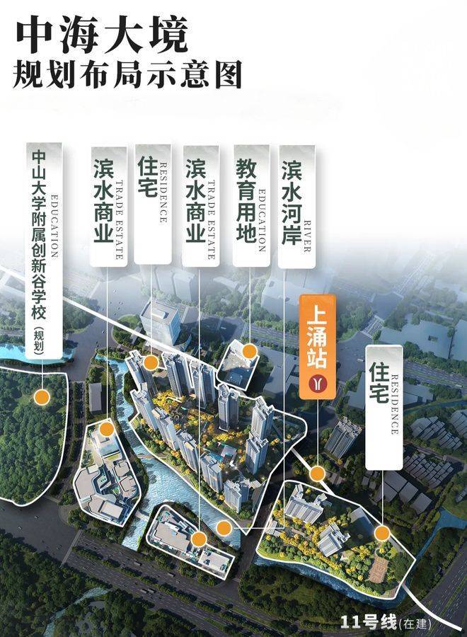 教育配套是许多家庭最关心的部分。中海大境西侧规划的教育地块,由中山大学直接管理,引进中大附中办学模式,涵盖托儿所、幼儿园、小学到完全中学,实现从幼儿园到高中一站式优质教育。学校体量大,包括18班小学和72班完全中学,规划目标是建成广州综合排名前五的水平。教学理念与现有中大附中保持一致,师资和课程体系有保障。周边还有华附海珠国际双语学校等优质资源,西北面直线距离中山大学也不远,全龄段教育资源丰富。海珠中部本来就缺少头部初中和高中,这所学校的落地补齐了区域短板,对整个片区教育价值提升明显。