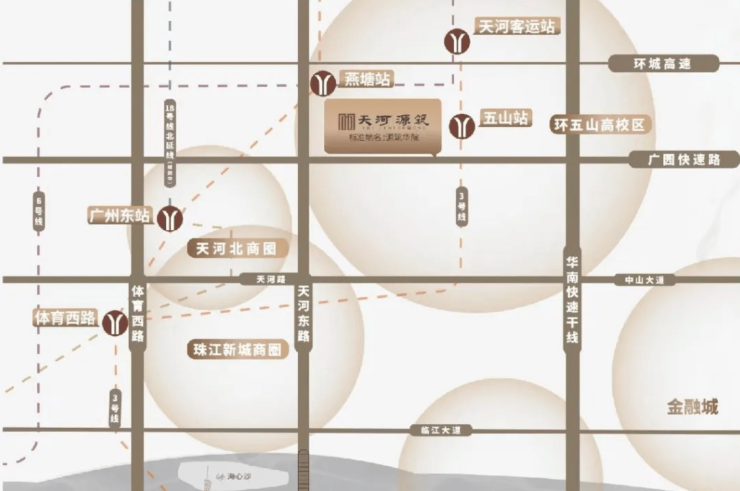 商业配套十分完善,距珠江新城约 4.5KM,距太古汇、天环、K11、IGC 等核心商圈约 3KM,超 10 家顶级商场及五星级酒店近在咫尺。医疗资源丰富,1.5 公里内有武警广东省总队医院、中山大学附属第六医院 2 所三甲医院。此外,周边汇聚广东省博物馆、广州图书馆等地标建筑,人文氛围浓厚。