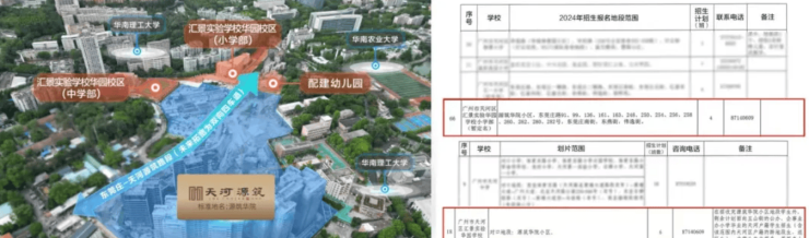 教育资源得天独厚,自建 9 班公立幼儿园及九年一贯制中小学(24 班小学、12 班中学),2024 年 8 月底开学。学校虽隶属于华附系,但由汇景实验本部负责管理。汇景实验学校属天河第一梯队,教学成果显著,去年中考全校平均分超广州普高录取线 95 分,高分段成绩优异,为业主子女提供一站式优质教育,实现目送式教育。